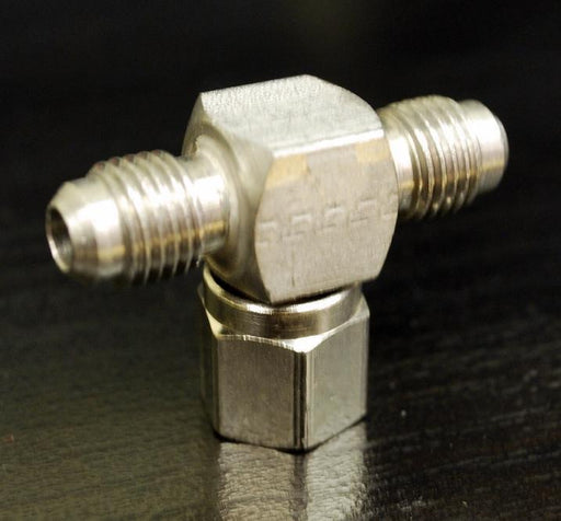 7070: 1/4 MFL Tee with 1/4 Side Swivel Nut, Stainless Steel