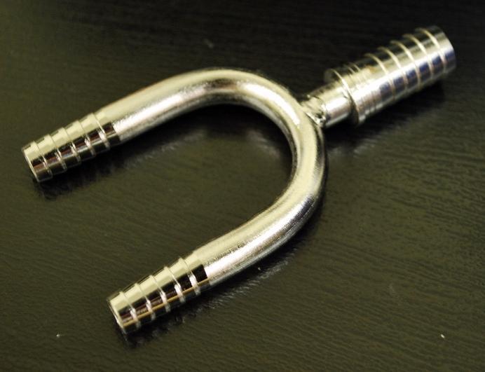 7126: 1/4 Barb U-Bend Manifold with 3/8 Barb, Stainless Steel