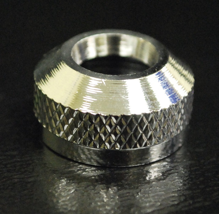 Beer faucet bonnet replacement is knurled for hand tightening ease and chrome plated for visual appeal. It attaches to the faucet below the tap handle and below the faucet collar.