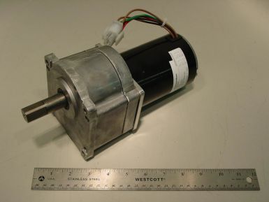 The motor gear, with a power rating of 1/8 HP, operating at 115V and 60Hz with a speed of 6 RPM, facilitates the operation of various mechanical components.