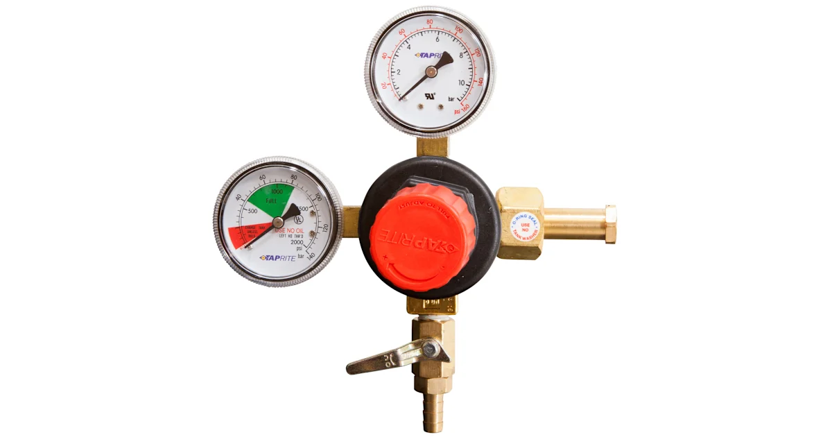Primary CO2 Regulator, 1P1P, High Pressure, High Performance, CGA320 Inlet, 5/16" Barb Shut-off Outlet w/Check, 160lb and 2000lb Gauges